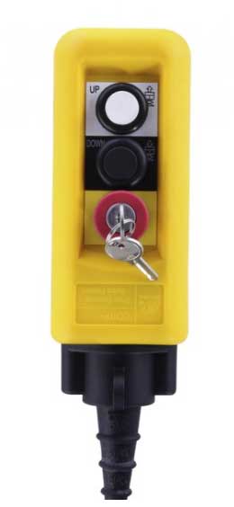 Platformun kaldırılması kumanda paneli üzerinden elektrik sayesinde gerçekleştirilir.Lifting of the Scissor Lift is done by electricity via the control panel. Down and Up