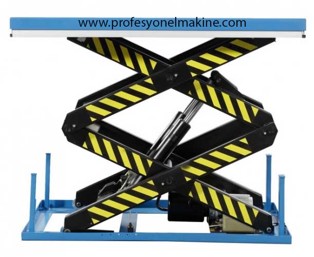 Lifting of the Scissor Lift is done by electricity via the control panel. Down and Up Makaslı Platform;1000kg, arası hidrolik piston ile aşağı ve yukarı çalışır.zemine sıfır olarak üretilir.bu sayede yüklerinizi kolay olarak taşınır."a kalite" ürünümüzdür