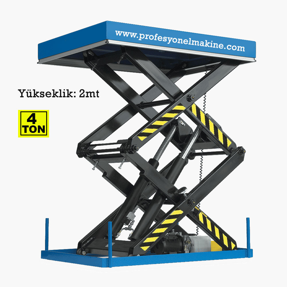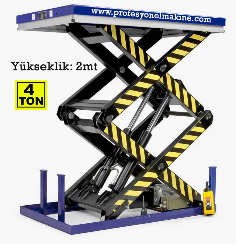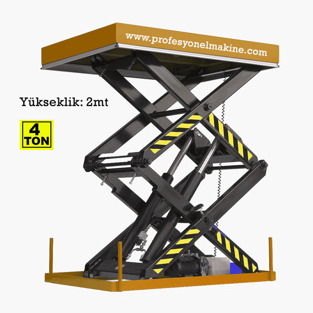 Lifting of the Scissor Lift is done by electricity via the control panel. Down and Up Makaslı Platform;1000kg, arası hidrolik piston ile aşağı ve yukarı çalışır.zemine sıfır olarak üretilir.bu sayede yüklerinizi kolay olarak taşınır."a kalite" ürünümüzdür