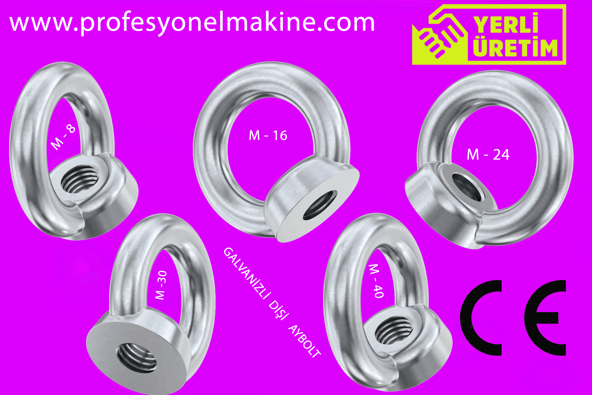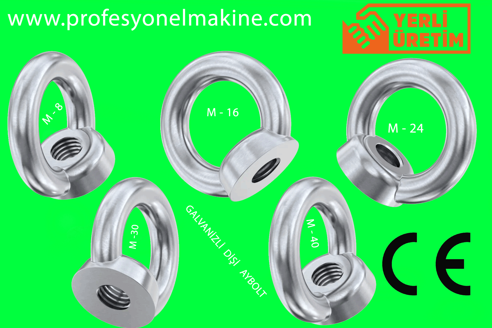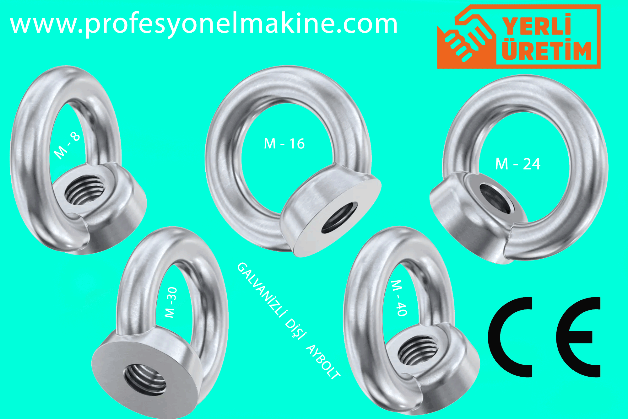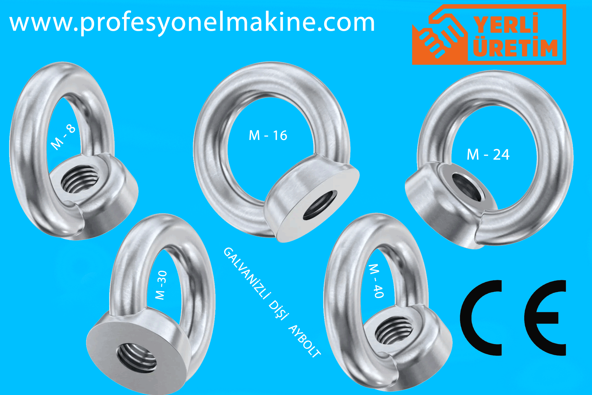 Göz: Dişi eyeboltun bir ucu, bir halka veya göz şeklindeki bir bağlantı noktasına sahiptir. Bu göz, yükleri asma veya bağlama noktası olarak kullanılır.
